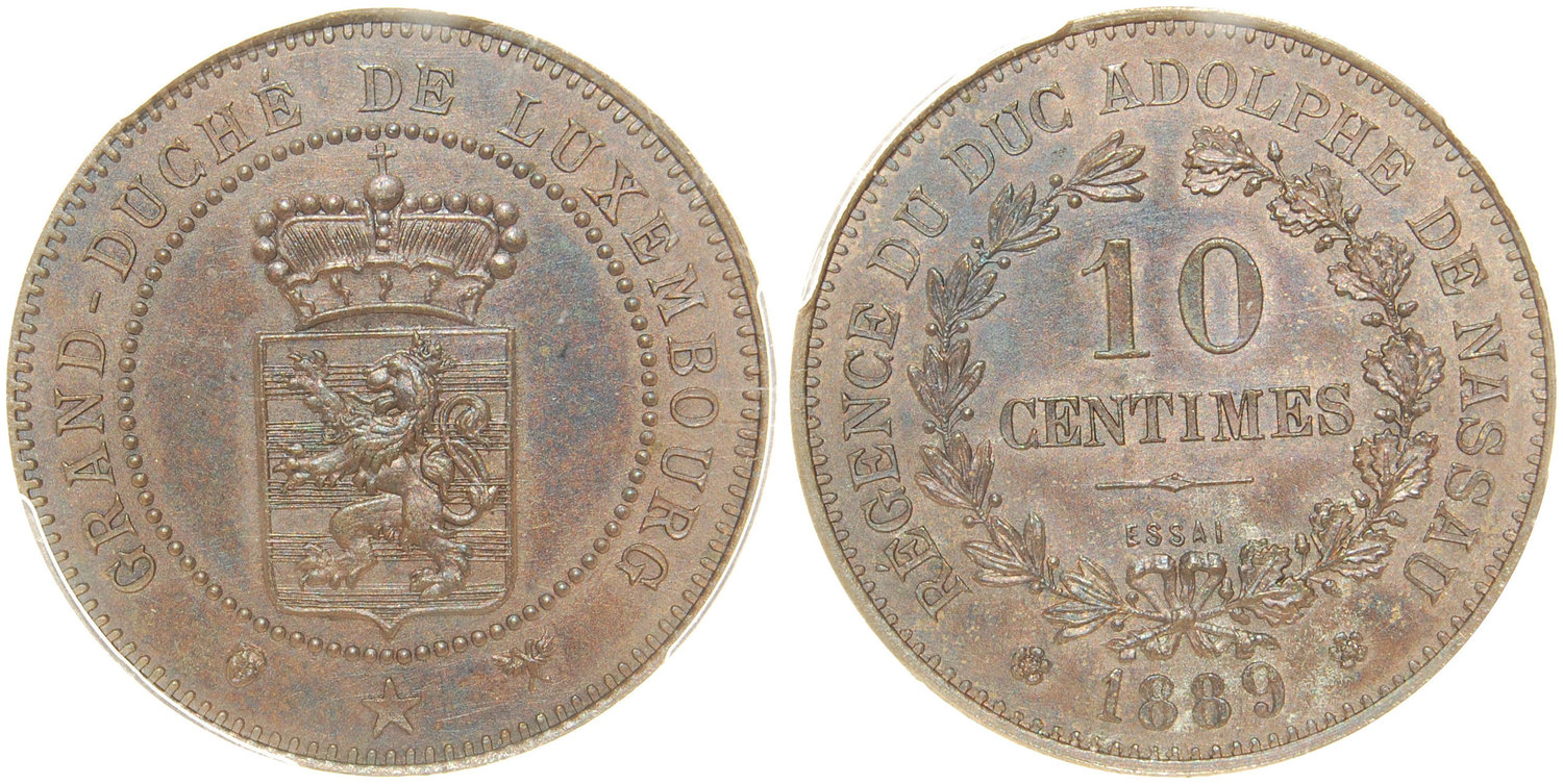 Luxembourg,Copper pattern 10 Centimes, 1889, Essai,