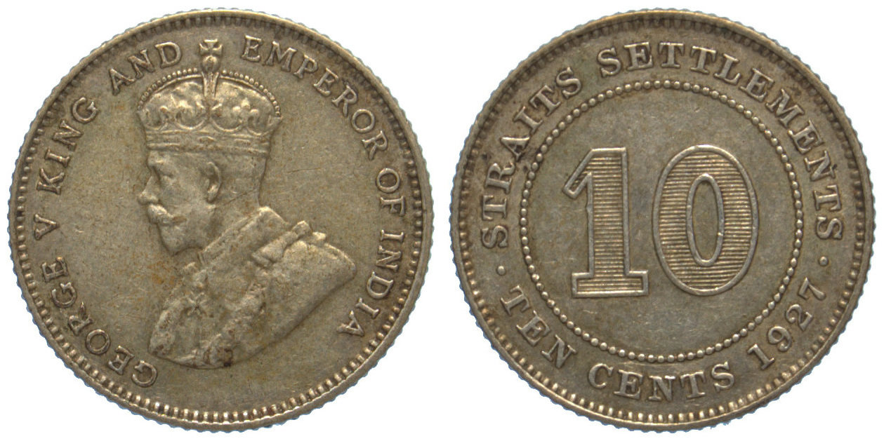 Strait Settlements,Silver 10 cents, 1927,George V on obverse,