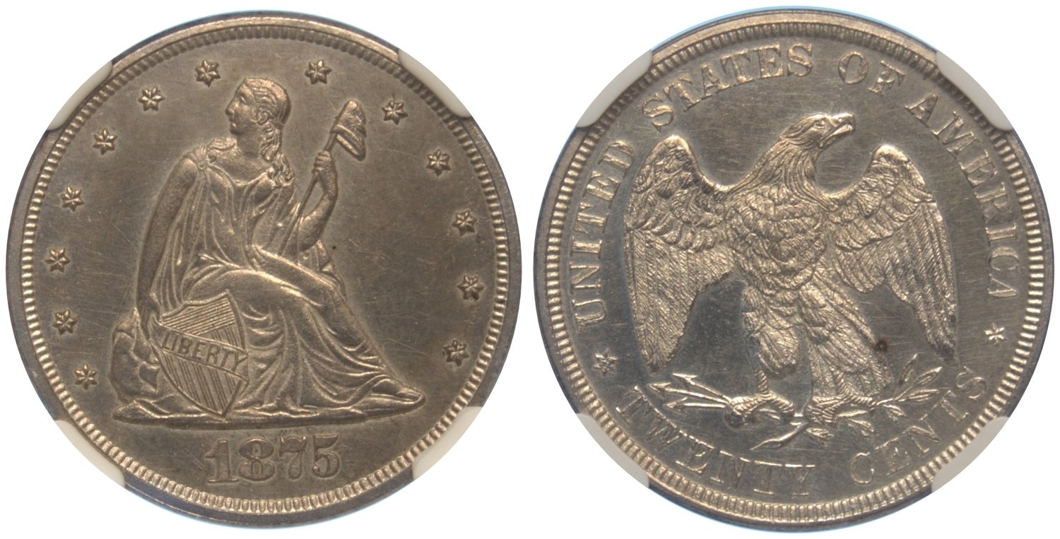 United States of America,silver 20 cents, 1875, ‘Seated Liberty’,