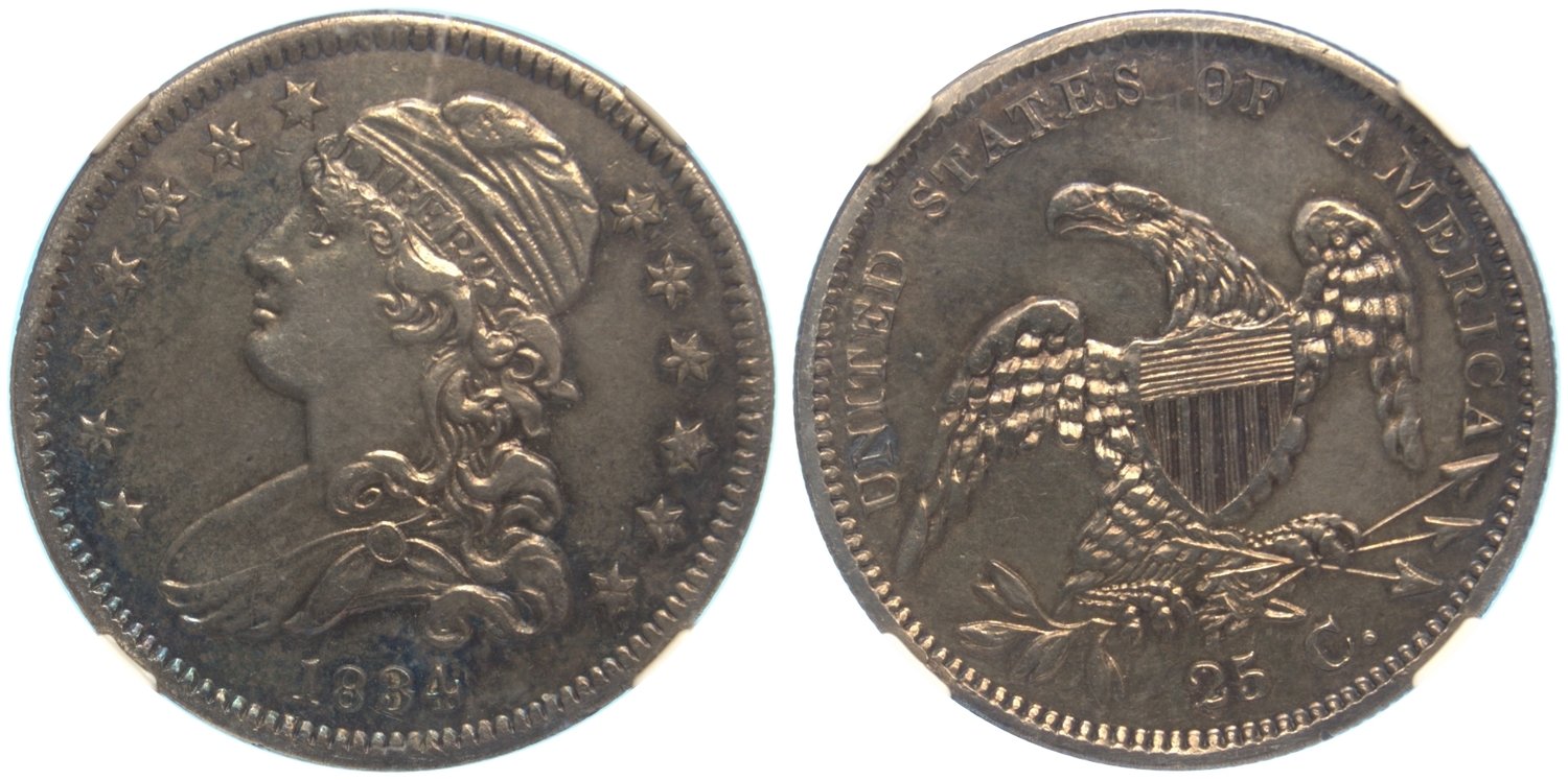 United States of America,silver 25 cents, 1834, ‘Liberty Cap’,