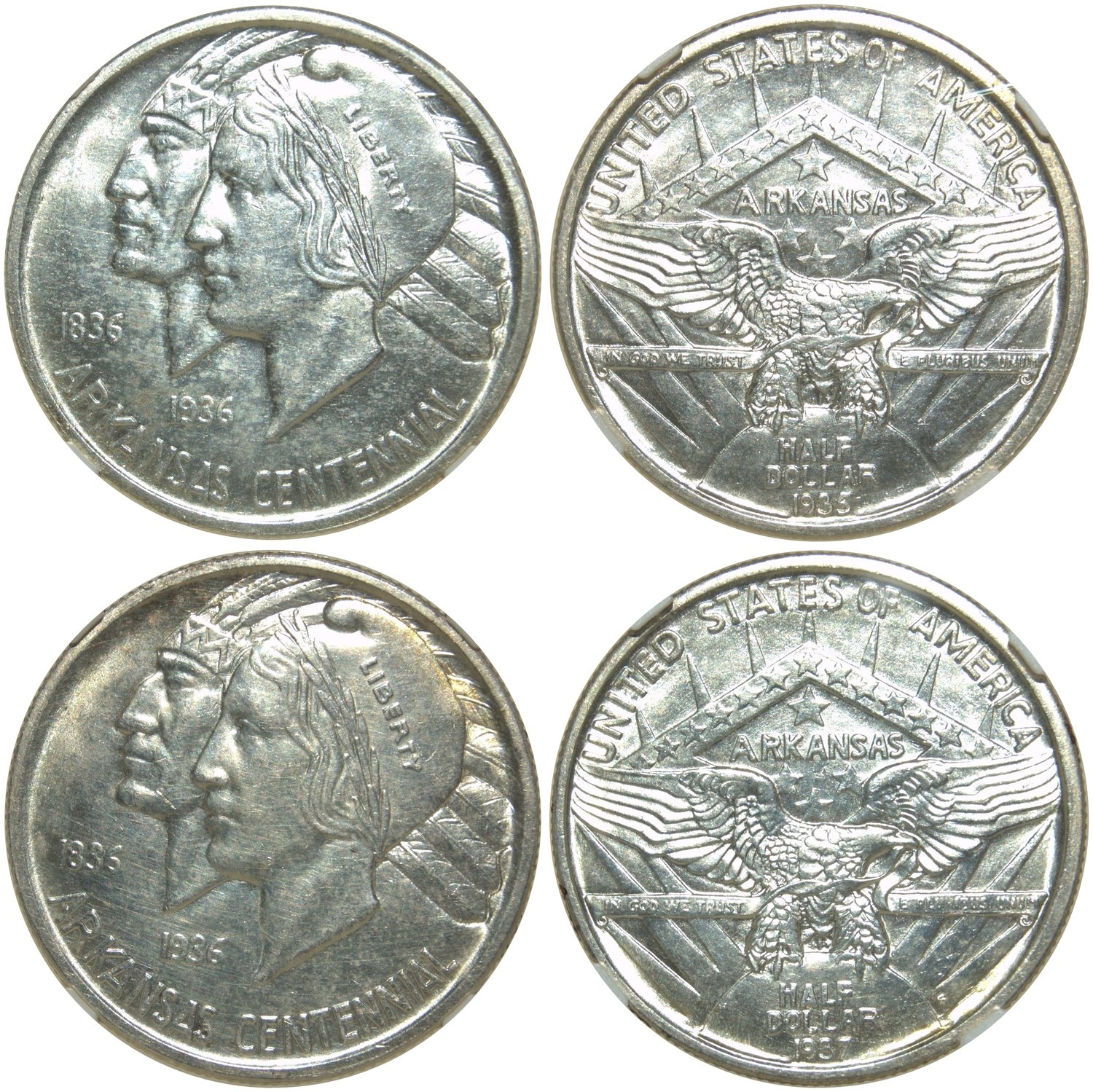 United States of America,a pair of silver 50 cents, 1935 and 1937,‘Arkansas Centennial’,