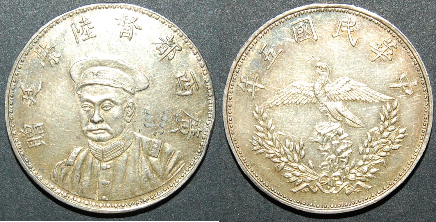 China,silver medal, 1916,presented by Lu Jung-T'ing, the Commander in Chief of Kwangsi, bust of the general on obverse, reverse eagle at centre, wreath below,