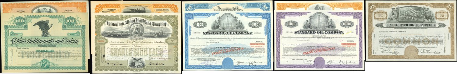 United States, lot of 9 share certificates, all perforated, generally extremely fine (9)