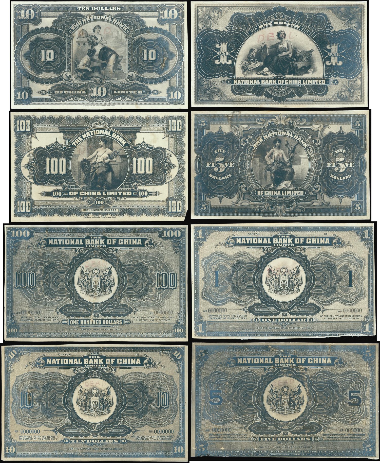 The National Bank of China, archival photographic proofs, no date, 1, 5, 10 and 100 yuan, uniface obverse and reverse, unissued designs,