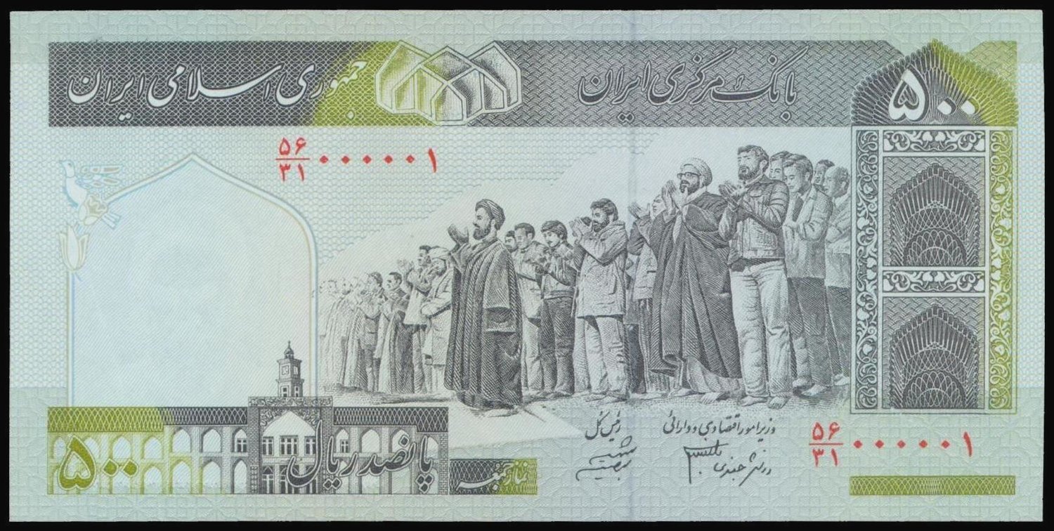 Iran, Bank Markazi,500 Rials, N.D. 2003-09, serial number 56/31 000001,‘low number’