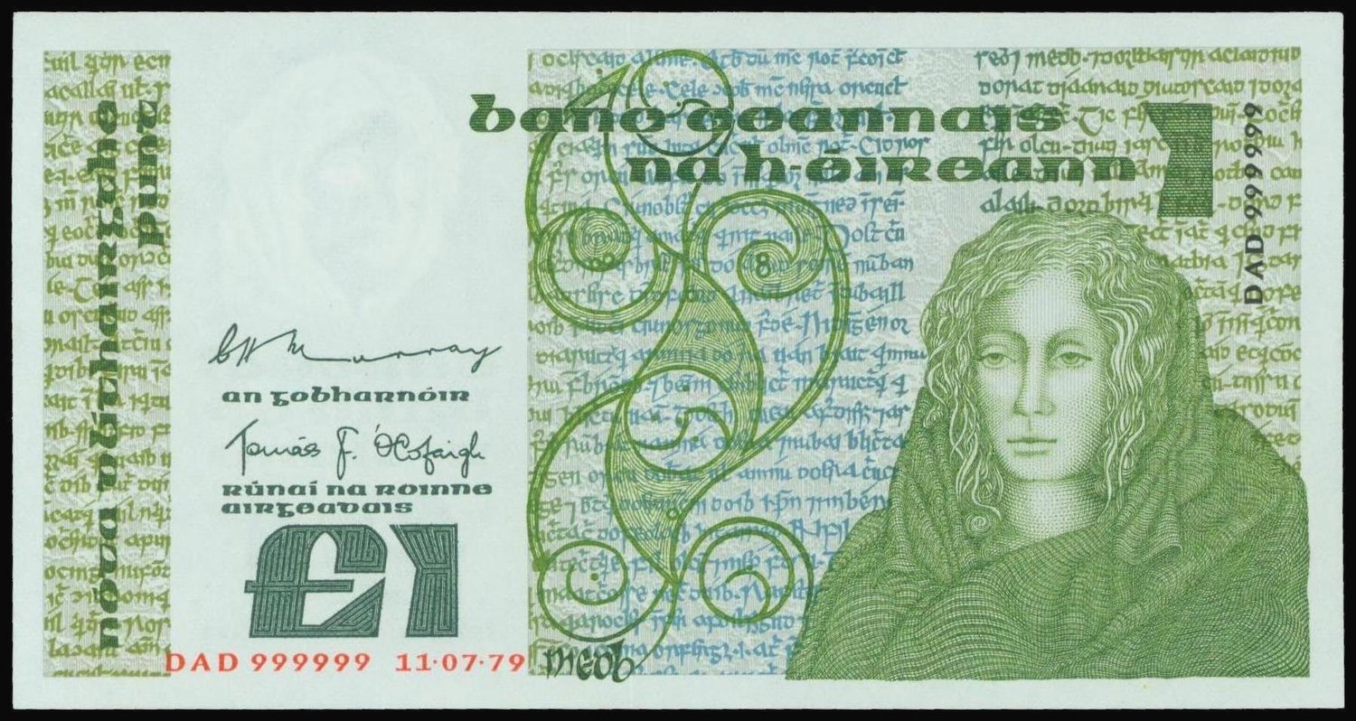 Ireland - Republic, Central Bank,1 Pound, 1978-81, serial number DAD 999999,‘lucky number’