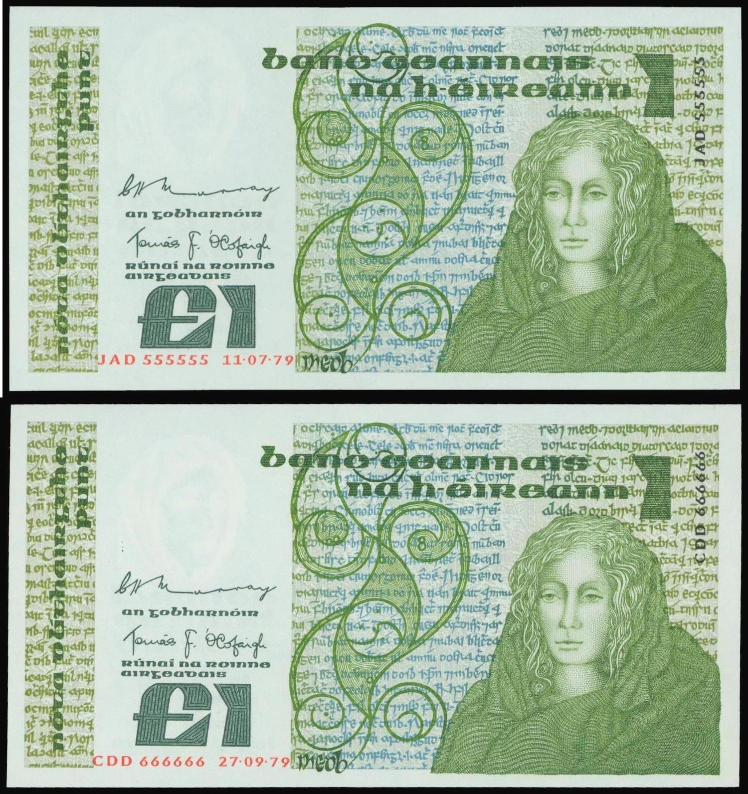 Ireland - Republic, Central Bank,1 Pound(2), 1978-81, prefix JAD/CDD, serial number 555555/666666,‘lucky number’