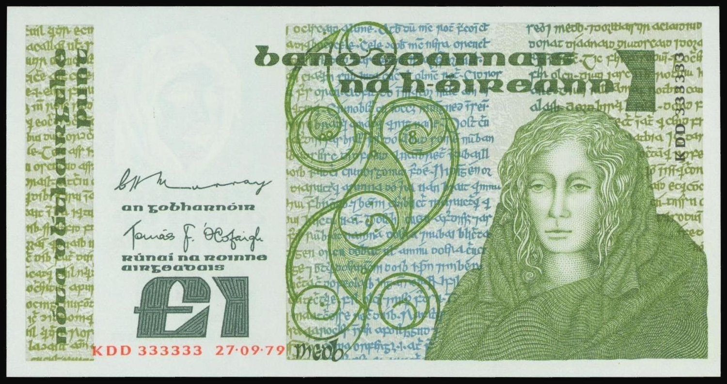 Ireland - Republic, Central Bank,1 Pound, 1978-81, serial number KDD 333333,‘lucky number’