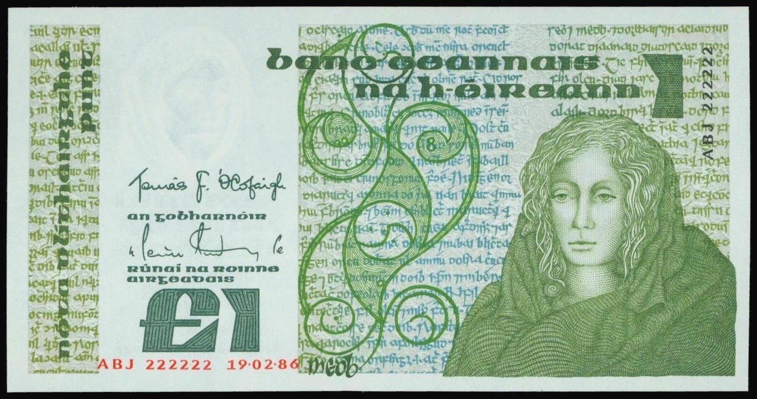 Ireland - Republic, Central Bank,1 Pound, 1982-87, serial number ABJ 222222,‘lucky number’