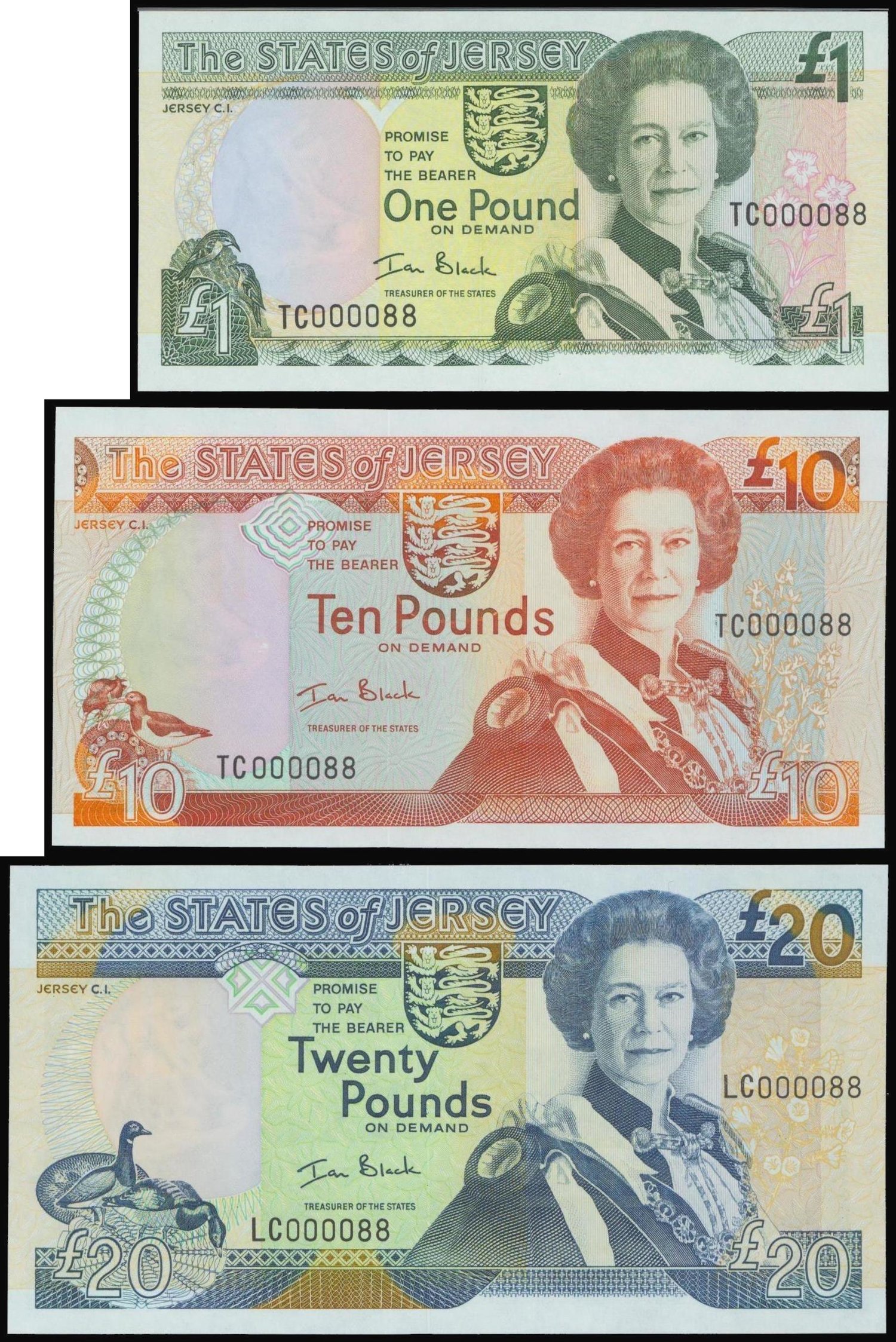 States of Jersey,1, 10, 20 Pounds, N.D. 2000, prefix TC/LC, identical serial number 000088,‘semi-lucky number’,