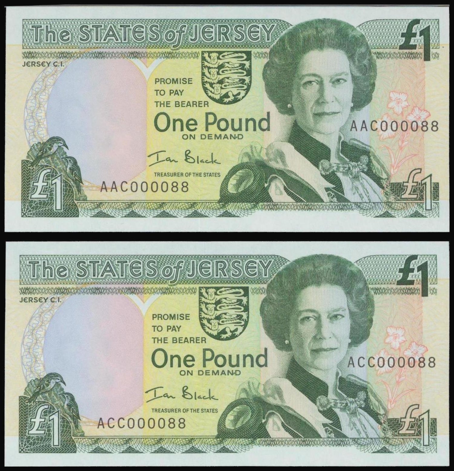 States of Jersey, 1 Pound(2), N.D. 2000, prefix ACC/AAC, identical serial number 000088, ‘semi-lucky number’,