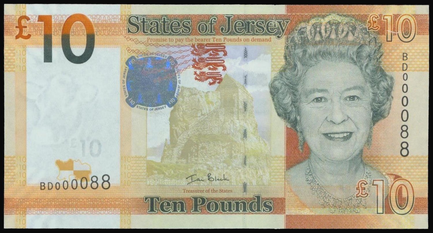 States of Jersey,10 Pounds, N.D. 2010, serial number BD 000088,‘semi-lucky number’,
