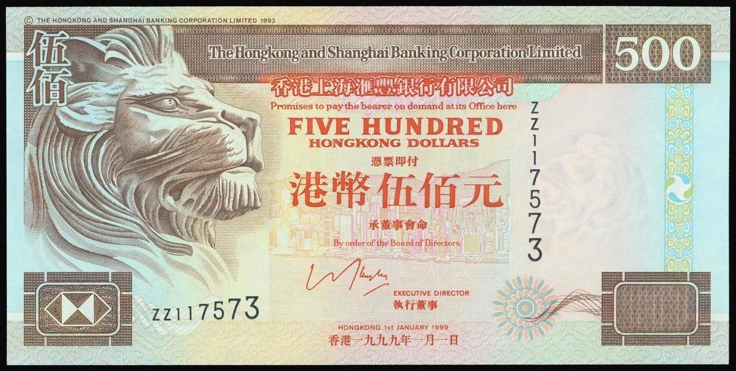 The HongKong and Shanghai Banking Corporation, $500, 1999, replacement prefix ZZ117573, (Pick 204d), uncirculated