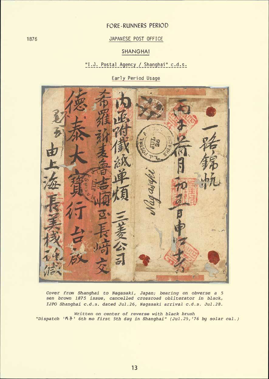 The operations of the Japanese Postal Agency were secured after the purchase of The Pacific Mail Company's Yokohama to Shanghai branch by the Mitsubishi Steamship Mail Company in March 1875