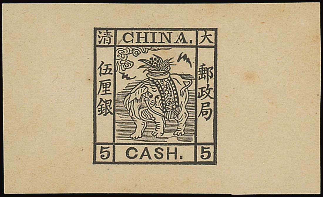 5 cash die proof in black on wove paper, 60 x 36 mm; there is a small spot to the right of the design. This appears to be a different cliché from the previous lot. Unique