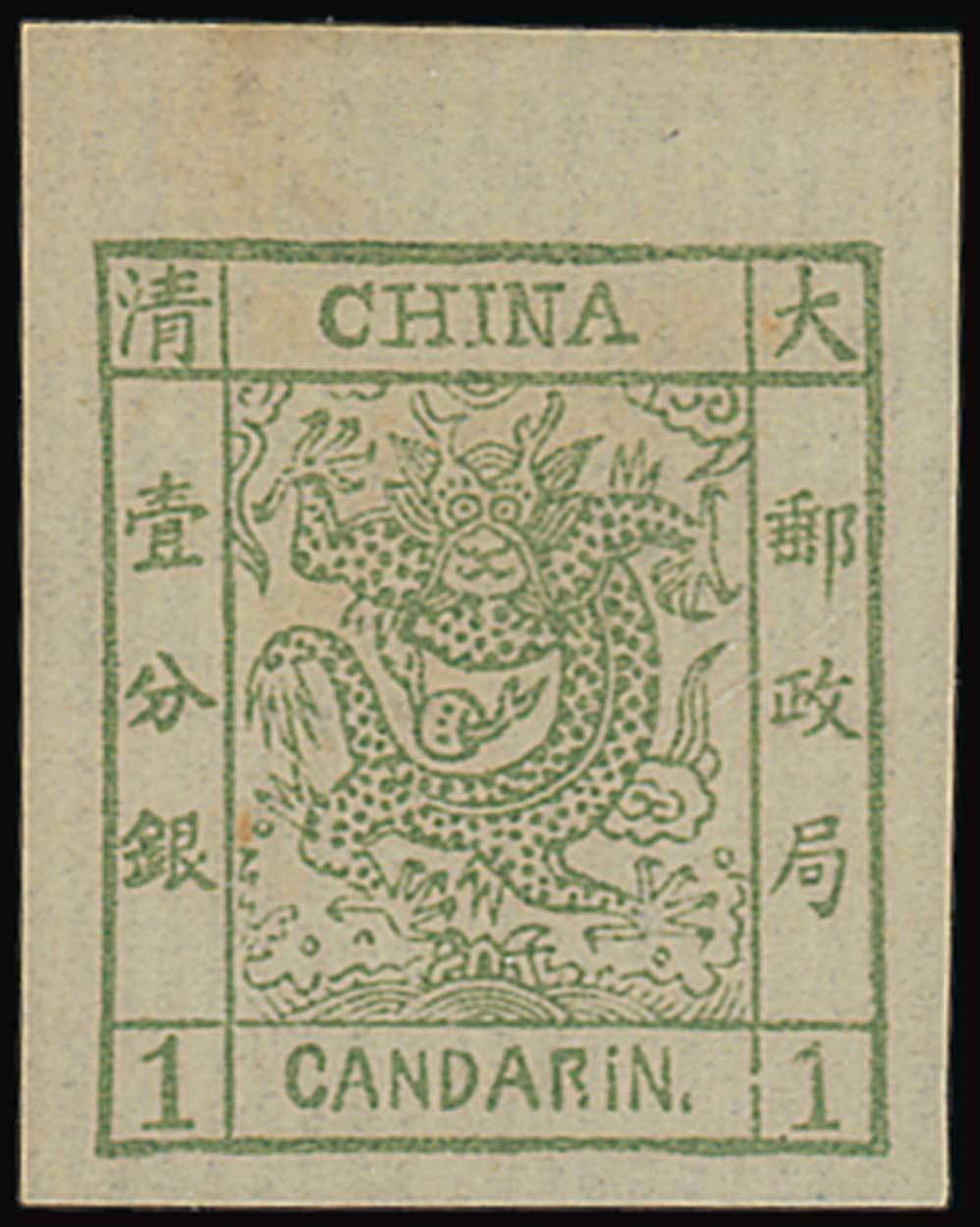 1ca. sage-green [4] with part top margin, without gum. Fine and rare. There are about five examples recorded of this value.