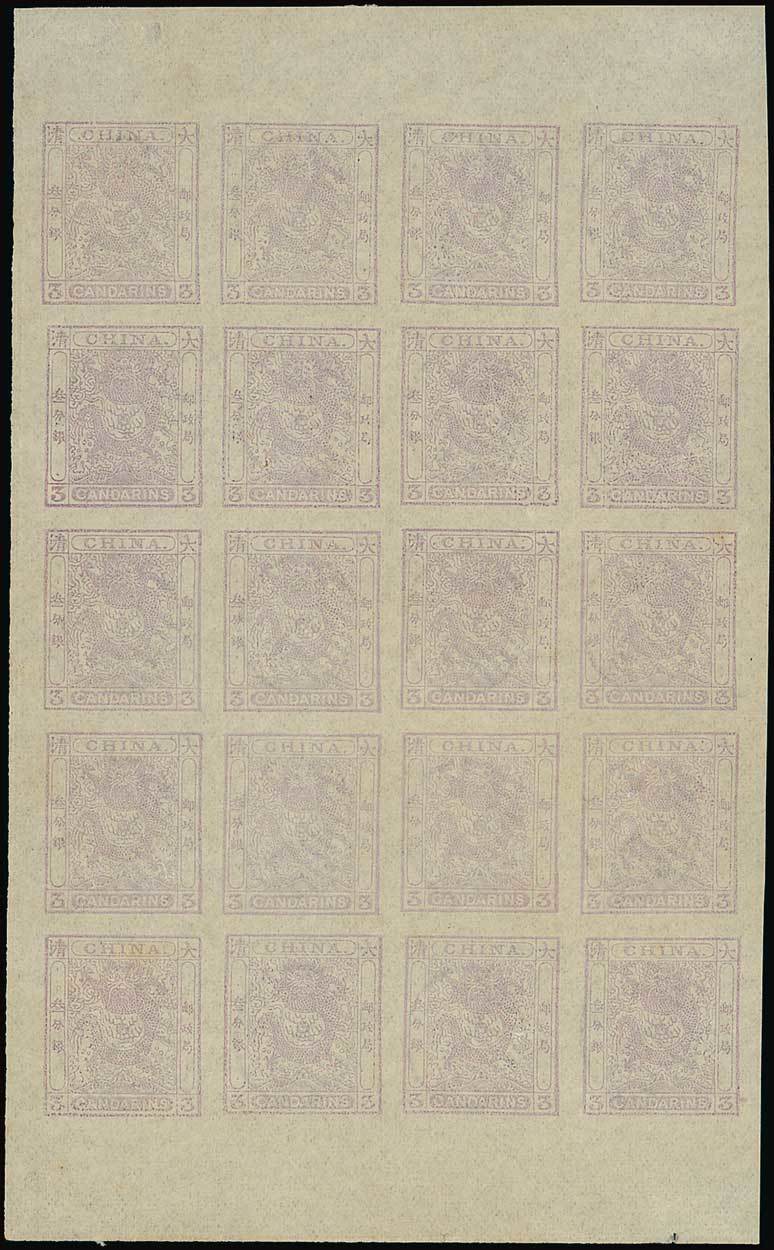 3ca. pale lilac-mauve in a complete imperforate pane of twenty, left pane Setting VIII; without gum. A scarce proof whichis rare as a complete pane
