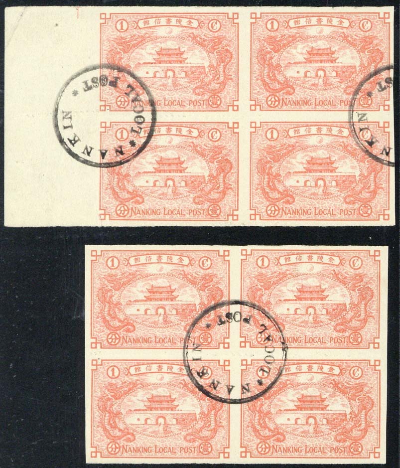1897 imperforate 1c. dull vermilion, a selection of used in singles and multiples bearing the Local Post cancellation in either purple or black, includes two blocks of four; a few bends or creases. S.G. 16. (16)