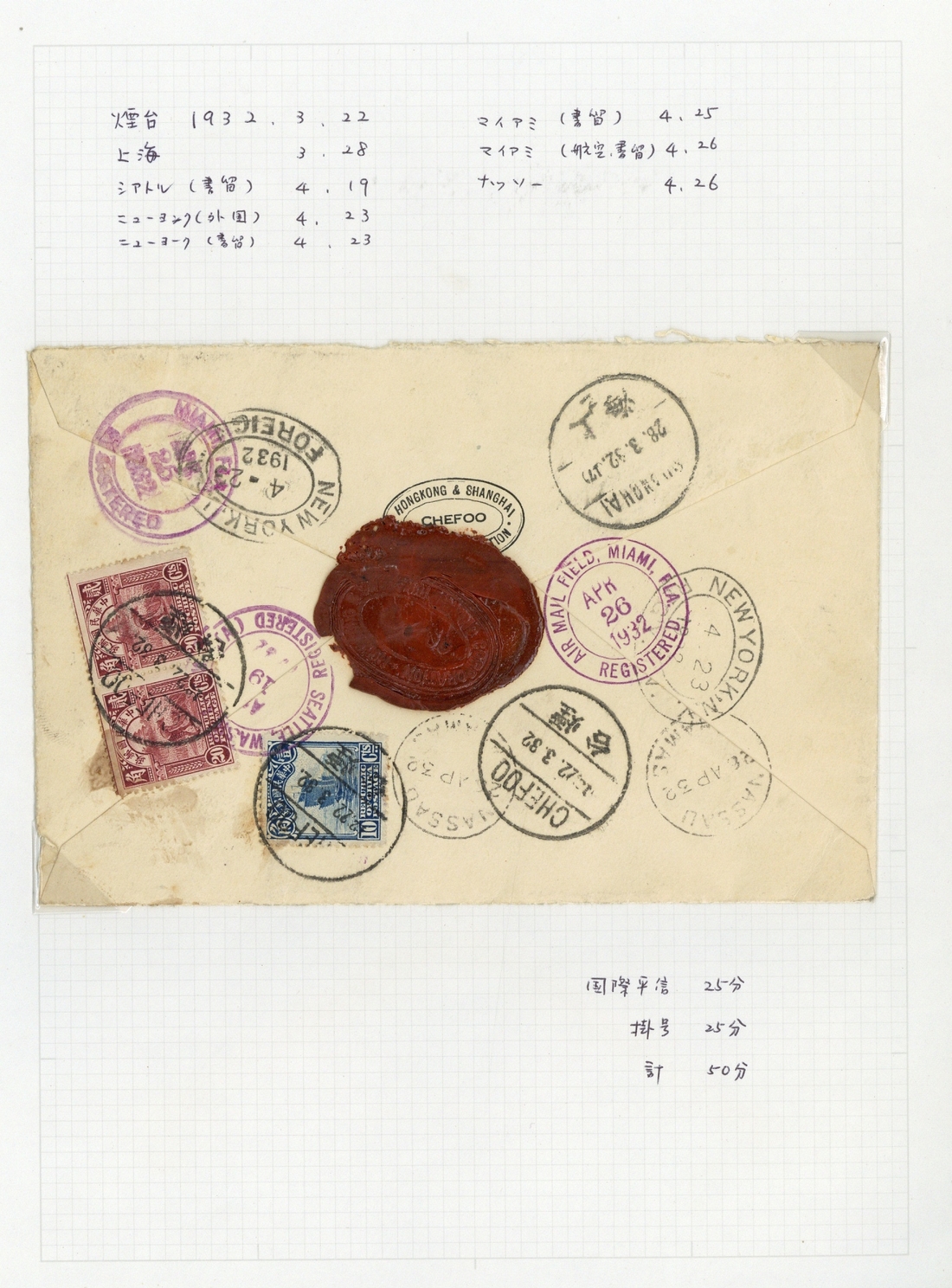 1914-36, a large collection of covers mounted on album pages showing a wide range of frankings with many to overseas and includes registered (20), Express (5) Taxed (2), Too Late (2), numbered tombstone, mailing agencies (2), censored (5); plus several bearing the surcharge issues, some from Manchuria and many more. A good, representative lot, well worth closer examination. (123 covers)