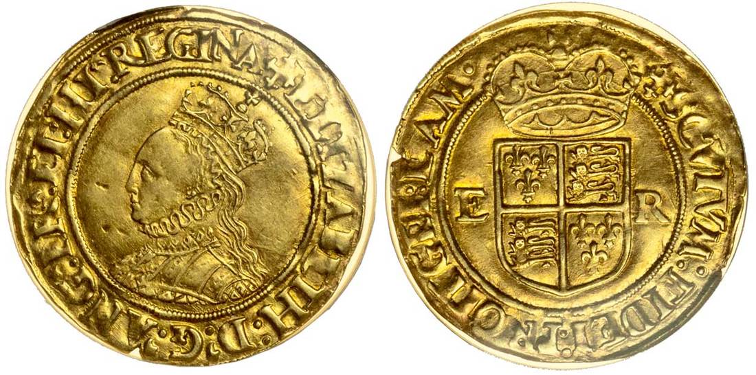 (x) Elizabeth I (1558-1603), Half-Pound, m.m. cross crosslet, elizabeth d g ang fr et hi regina, crowned bust left, rev. scvtvm fidei proteget eam, crowned shield (Schneider 738; N.1982; S.2520), sharp lettering and detail preserved, especially within the reverse shield. NGC graded AU-50