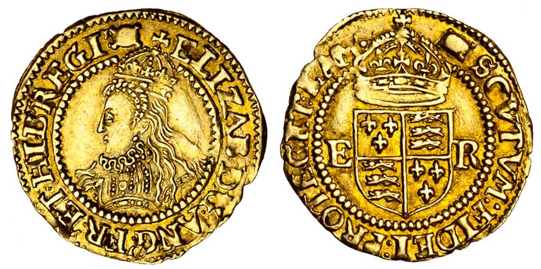 (x) Elizabeth I (1558-1603), sixth issue 1583-1600, Halfcrown, 1.31g, m.m. woolpack, elizab d g ang fr et hib regi, crowned bust left in ornate jeweled dress, rev. scvtvm fidei proteget eam, crowned shield, er at sides (Schneider - (cf.818-821); N.2011; S.2537), well centered with a good portrait and sharp details all around, flan slightly ragged, choice very fine