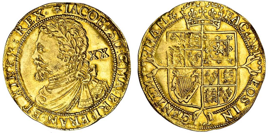 (x) James I (1603-1625), third coinage, Laurel, 8.82g, m.m. spur rowel both sides, iacobvs d g ma bri fran et hiber rex, first, laureate bust left, rev. faciam eos in gentem vnam, crowned shield over long cross fleury, m.m. to left of crown (Schneider 82; N.2111; S.2637), a full round specimen, very fine, rare