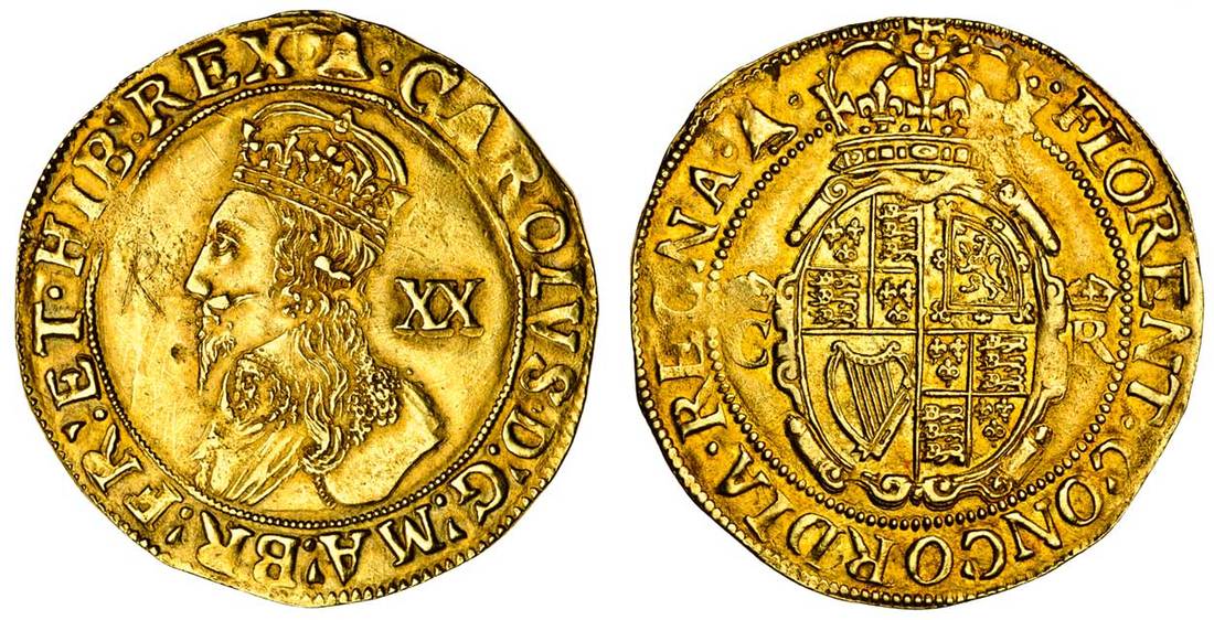 (x) Charles I (1625-1649), Unite, 8.96g, Tower mint, m.m. bell, carolvs d g ma br fr et hib rex, fourth crowned bust left, wearing lace collar, mark of value behind, rev. florent concordia regna, crowned, oval, garnished shield, dividing crowned c-r (Schneider 151; N.2153; S.2692), almost extremely fine with an excellent portrait