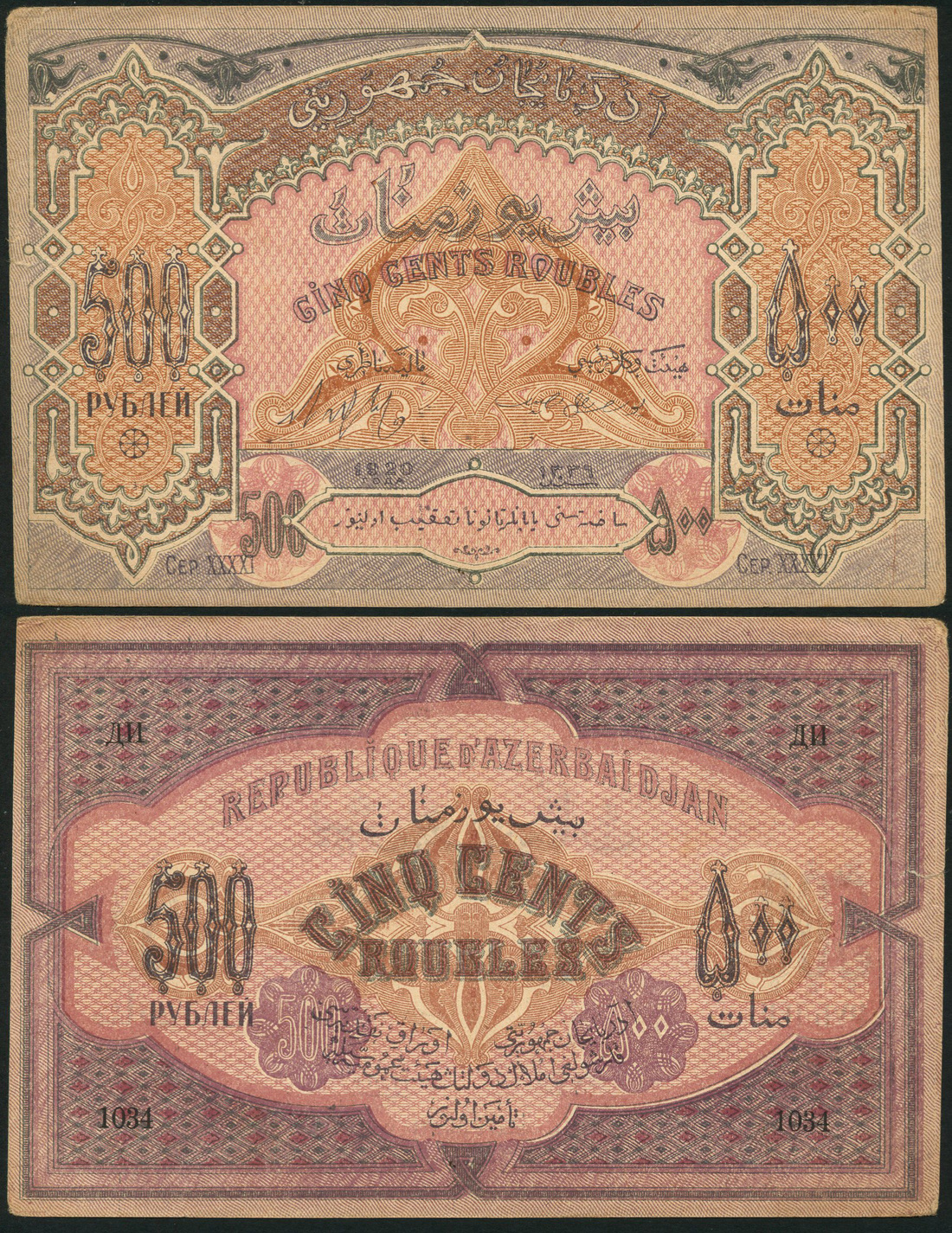 (x) Azerbaijan Republic, 500 rubles, 1920, serial number 1034, brown, value in field