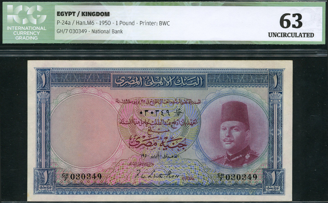 (Pick 24a, Hanafy M6a), in ICG holder number 63, uncirculated