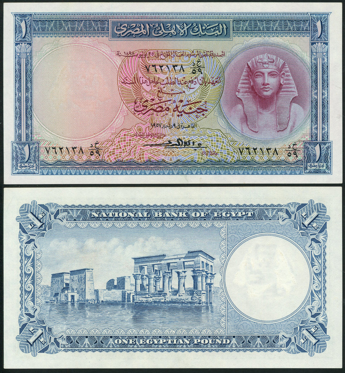 (x) National Bank of Egypt, £1, 1957, blue and pale red, Tutankhamen at right