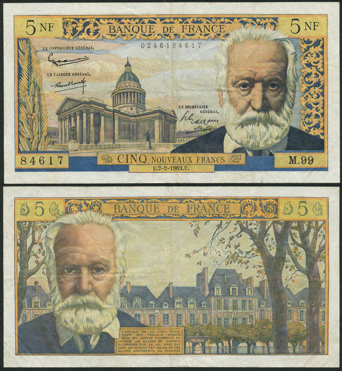 (x) Banque de France, 5 francs (9), 1933, lilac, 'France' at left