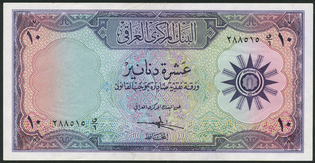 (x) Central Bank of Iraq, a selection comprising 1/4 dinar, green, 10 dinars (2), purple, all Nadhim al-Zahawi signature, also 1/4 dinar (3), green, one Zalzalah signature, two al-Kaissi signature
