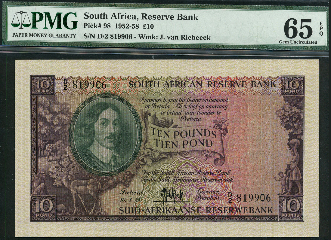 (TBB SARB B26, Pick 98), in PMG holder number 65, gem uncirculated, EPQ