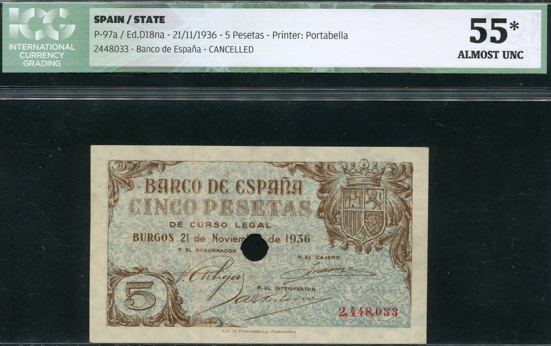 (Pick 97a), two pinholes at right, in ICG holder number 55*, almost uncirculated