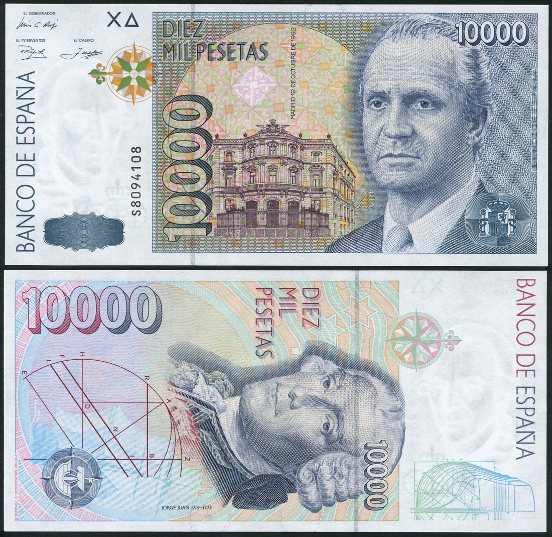 (x) El Banco de Espana, 10000 pesetas, 1992 (1996), prefix S, blue, King Juan Carlos I at right