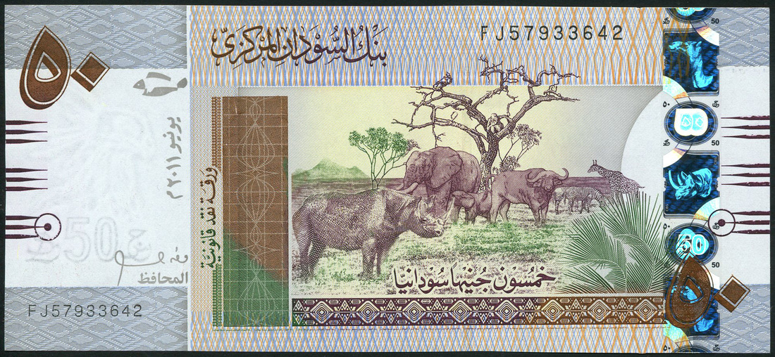(x) Sudan, a group of replacement notes Bank of Sudan, 50 piastres, 1987, serial number Z/11 143545, red, Central bank of Sudan £20 and £50, 2011, Bank of Sudan, 50 and 5000dinars