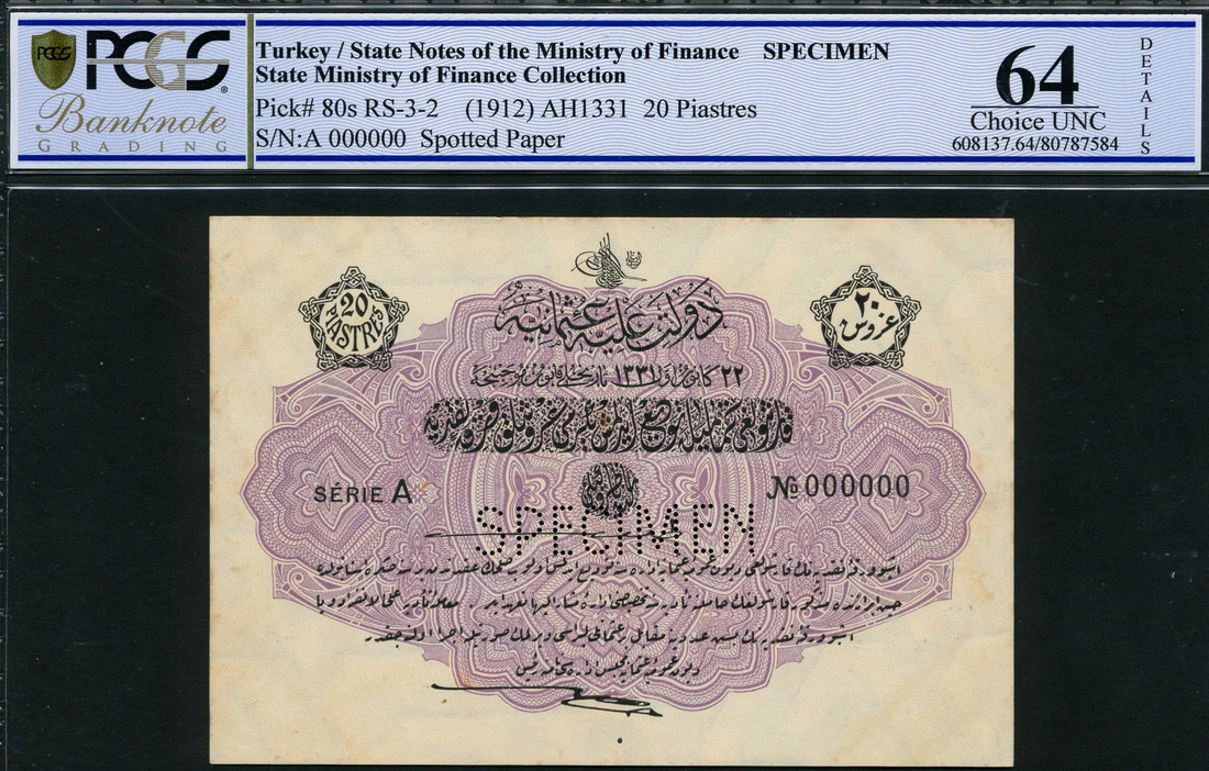 (Pick 80s, Gaciroglu RS-3-2), slight foxing (spotted paper), in PCGS holder 64 CHOICE UNC