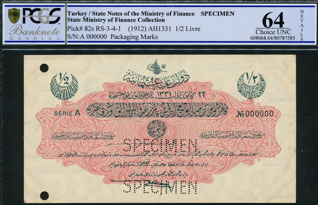 (Pick 82s, Gaciroglu RS 3-4-1)), perforated low and top left, mounting traces, in PCGS holder 64 CHOICE UNC