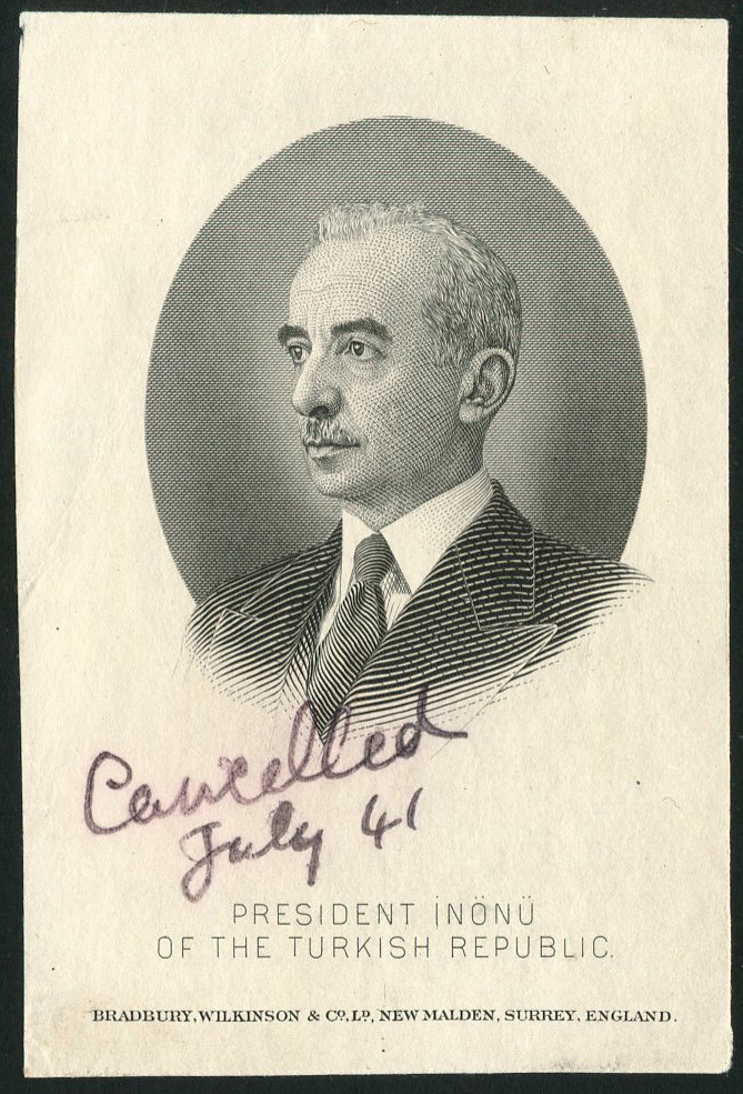 (x) Turkey, a vignette of 'President Inonu of the Turkish Republic', black and white, as used on the series of 1940,