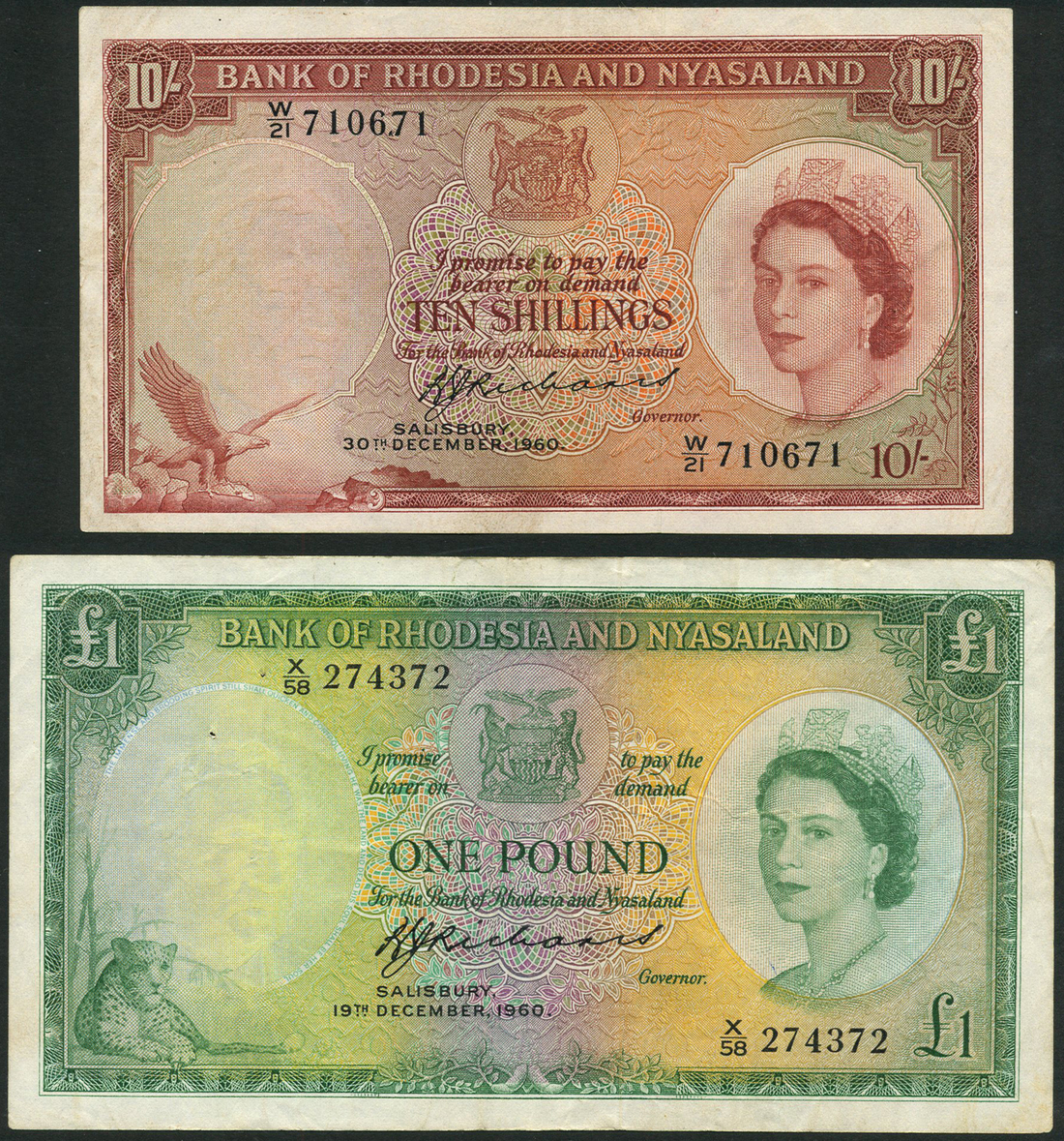A mixed group of world banknotes, including Rhodesia & Nyasaland, 10 shillings and £1, 1960, very fine, Zambia, specimen 50 ngwee and 1 kwacha, 1973, Burma, specimen 1, 5, 10 and 20 kyats, 1965, as well as several other notes,