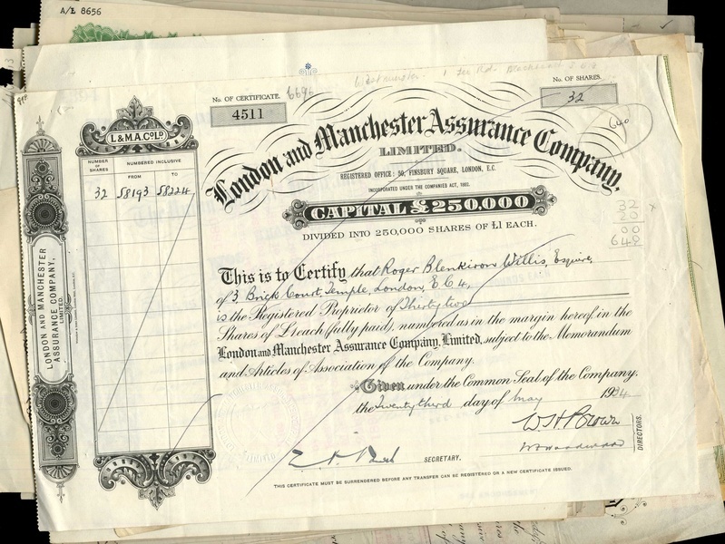 British Insurance and Banking companies, comprising; London and Manchester Assurance Co. Ltd., 19[34]; Union Marine Insurance Co. Ltd., 18[75], 18[78], 188[1] and 189[4]; Liverpool Mortgage Insurance Co. Ltd., 18[91] to 18[97] (16) and 19[19] with paperwork; Westminster Bank Ltd., 192[9]; Barclays Bank (Dominion, Colonial and Overseas), 19[26]; National Provincial Bank Ltd., 19[57] to 19[64] (22); Martins Bank Ltd., and others dated 1950's to 1970's (55), mixed condition but many very fine (101)