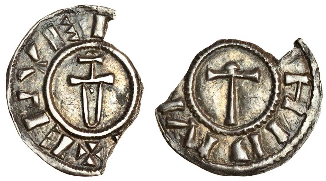 Hiberno-Norse Kingdom of York, early period, c.920-27, Penny, 0.91g., anonymous issue, sword/hammer type, c.920, +EILEI[..], sword, rev. [.]HIDIVI[.], Thors’s hammer (N.533; S.1012), a fragment, c.60% complete coin, lightly toned, very fine, extremely rare