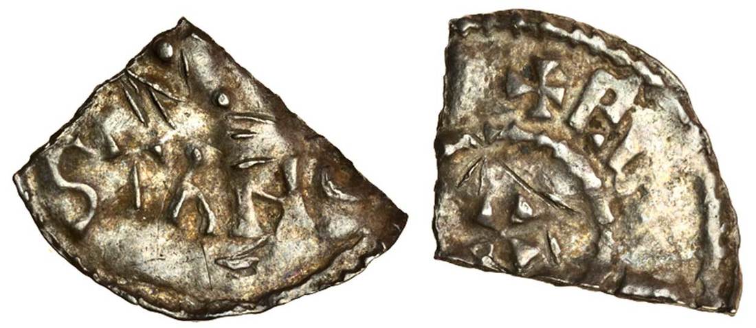 Wessex, Alfred the Great (871-99), cut quarter Penny, 0.62g., two-line type, ?Canterbury, Ethelstan (N.635; S.1066), good fine; Archbishops of Canterbury, Plegmund (890-914), Penny, 0.49g., fragment, class I, [.]ND ARC[.], uncertain moneyer (N.253; S. 900), good fine, rare (2)