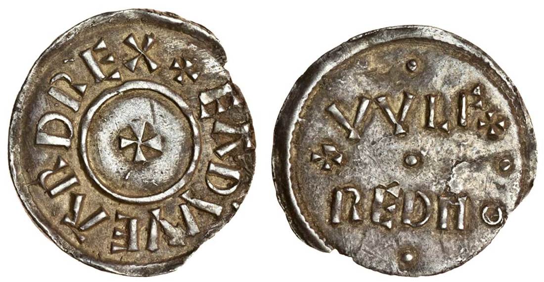 Wessex, Edward the Elder (899-924), Penny, 1.44g., HP1, Winchester, c.899-905, +EADVVEARD REX, small cross. rev. VVLF/RED MO, divided by cross, left, and two pellets (N.649; S.1087), edge loss at one to five o’clock, light tine, very fine, the earliest horizontal types scarce