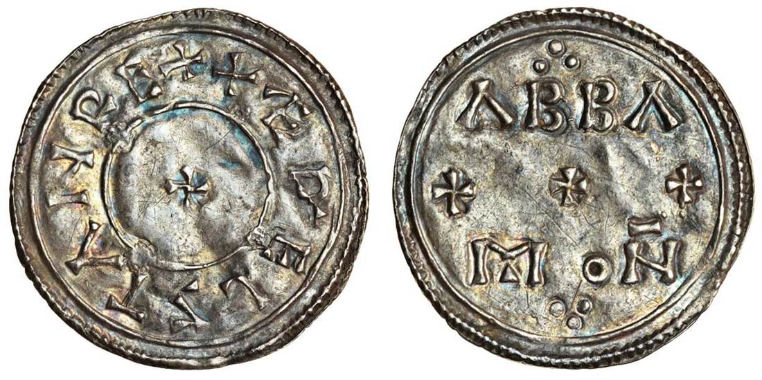 Aethelstan (924-39), Penny, 1.54g., HT1, Abba, +ÆÐELSTAN REX, rev. ABBA/MON (N.668.1; S.1089), light crimping, old tone, very fine