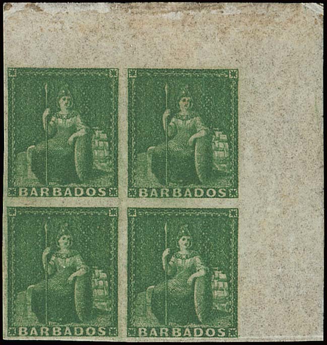 (½d.) grass-green upper right corner block of four, variety imperforate, fine unused with large part original gum (slightly browned). S.G. 22a, £1700. Photo