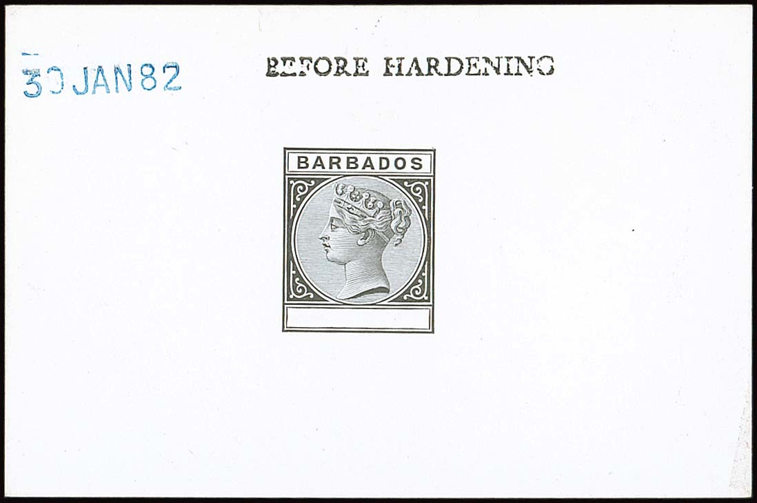 Master die proof with blank value tablet, in black on glazed card (92x60mm.) marked "before hardening" and dated "30 jan 82", fine. Photo