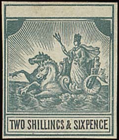 2/6d. in grey with blank country name and the value tablet handpainted in the same colour, on gummed unwatermarked paper, small margins, fine. Photo
