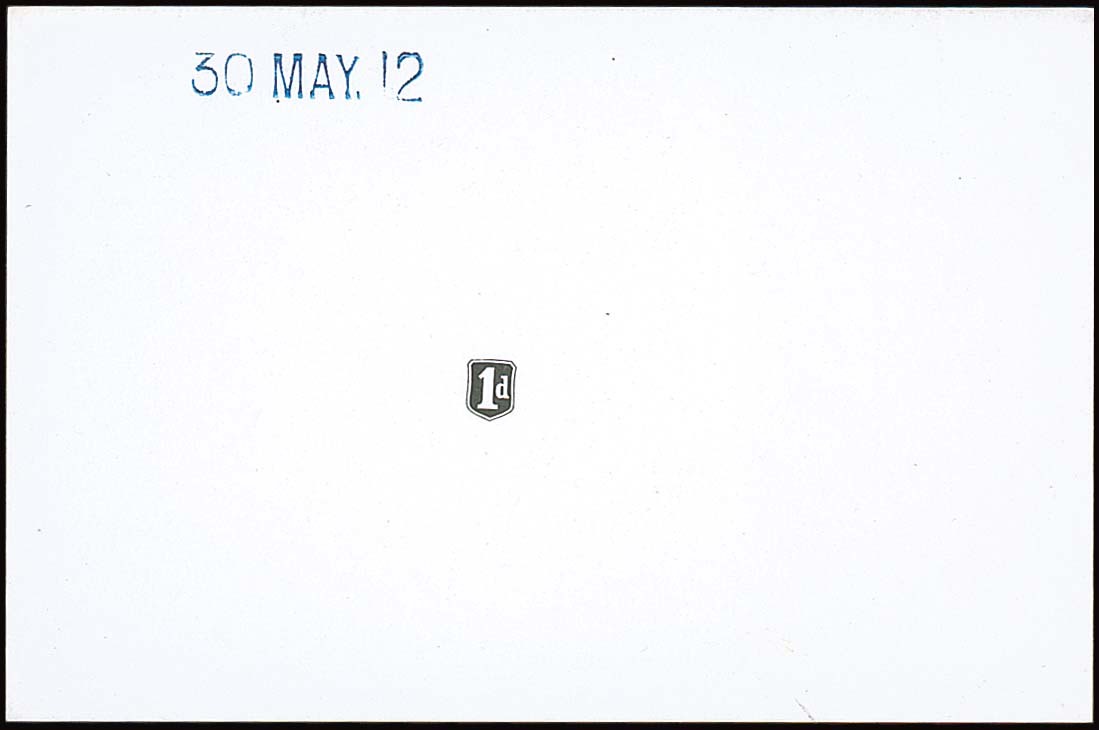 1d. value tablet only in black on glazed card (92x60mm.) dated "30 may 12", fine. Photo
