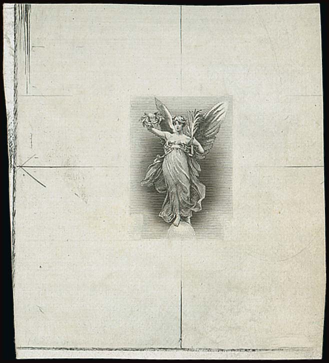 Shilling value vignette in black on glazed paper (36x42mm.) showing guidelines in borders, fine. Photo